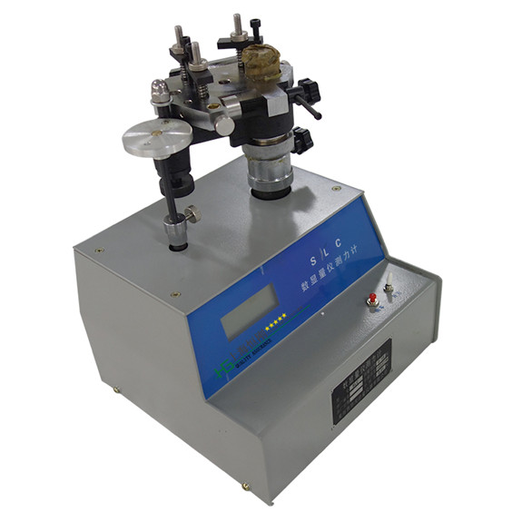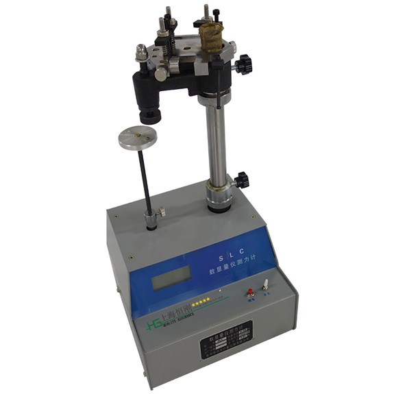 将被检的表(百分表、千分表、扭簧表、测微表、杠杆表)、光学仪器(光学计管、乌式干涉管)插进六角受力盘相应的孔内,并由螺钉锁紧。转动横臂及六角受力盘,使被检器具的测头对准仪器受力盘的平面位置,旋转立柱上的升降罗母使被检表临近接触受力盘的平面位置时,即锁紧定位螺钉及横臂定向螺钉和六角夹持盘紧固罗母。打开电源开关,按下开机清零按钮,使显示窗上的数字为零。旋转微调装置,下降六角夹持盘,使被检器具测头与仪器受力盘平面接触,继续调接微调装置,即可测得被检器具的正反行程上的测力。