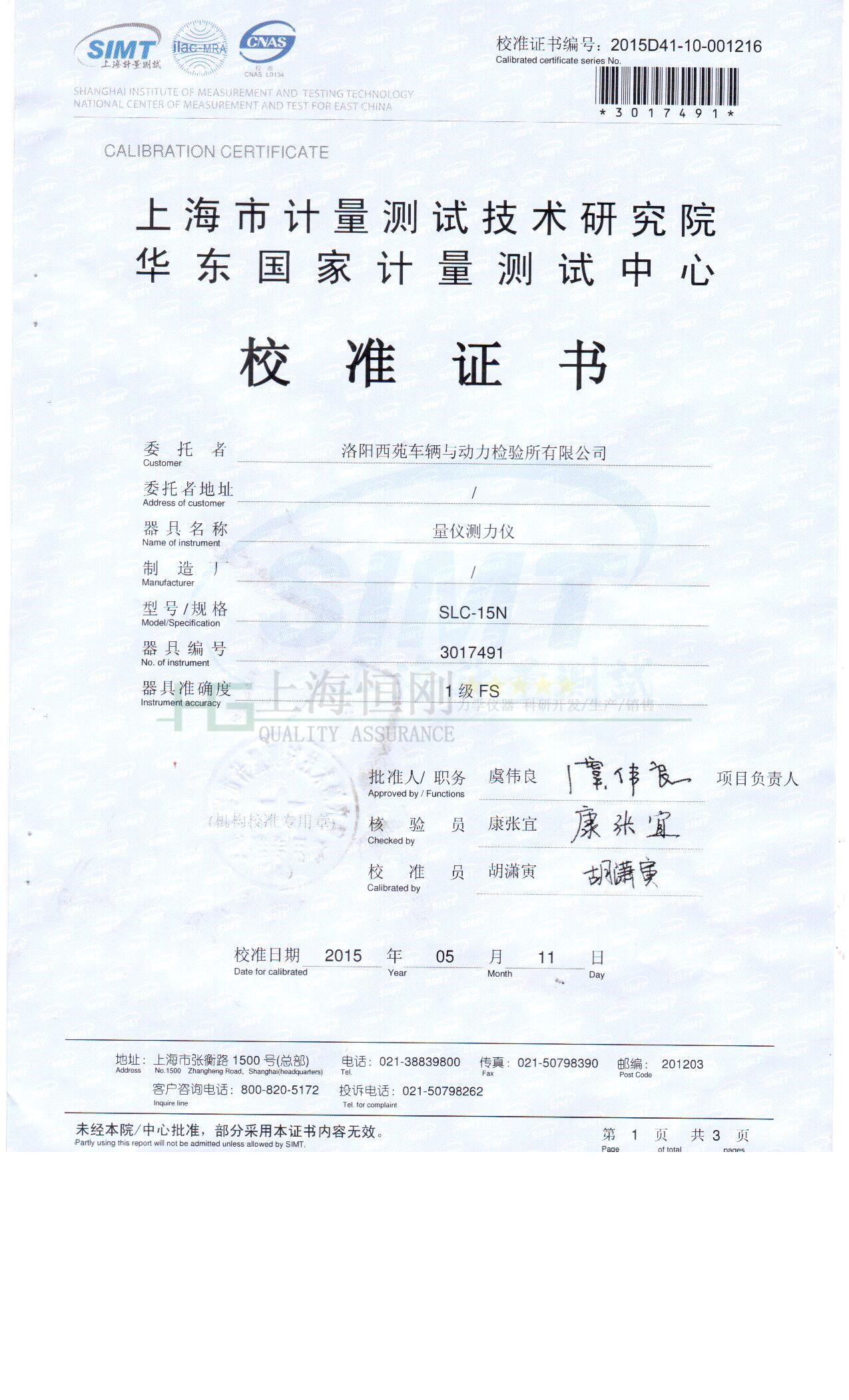数显量仪测力计的检定证书